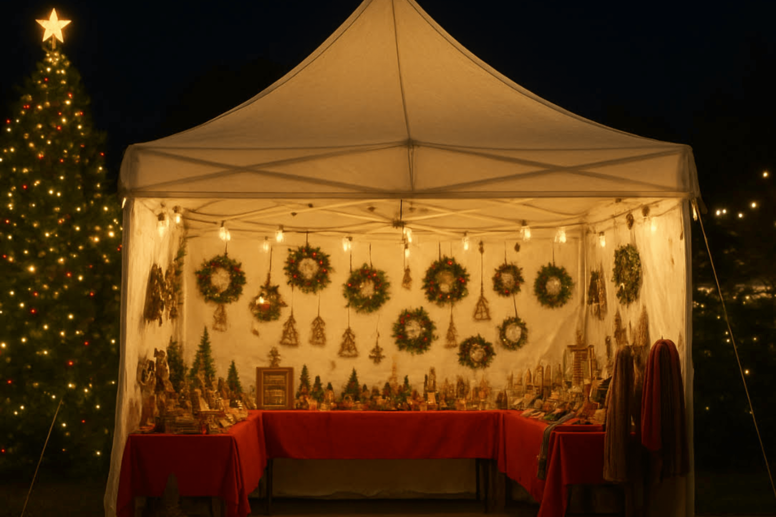 Vendors are encouraged to decorate their tents for Christmas.